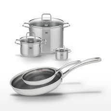 - COMPOSITION : Acier inoxydable 18/10, aluminium pour une répartition parfaite de la chaleur, et verre pour les couvercles.