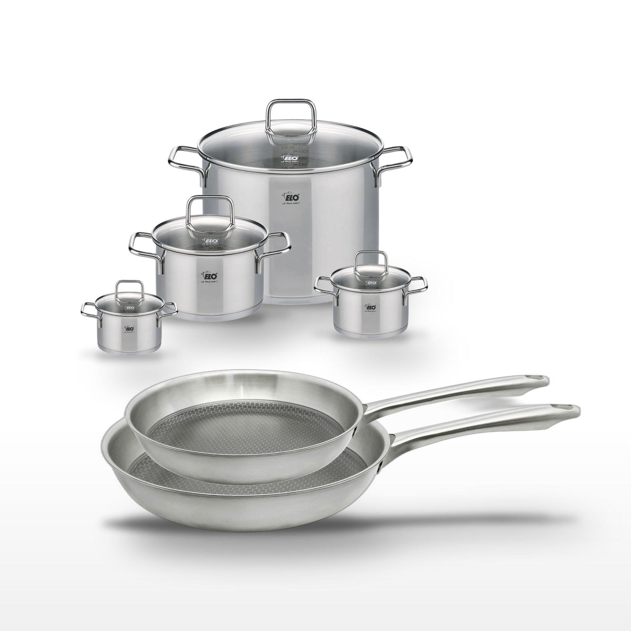 - DESCRIPTION : L'ensemble Elo Relief Passion inclut deux poêles en inox avec revêtement sans PFAS et quatre faitouts en inox Elo Citrin, offrant une cuisson homogène et saine.