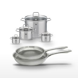 L'ensemble Elo Relief Passion est conçu pour répondre aux exigences des professionnels comme des amateurs de cuisine. Ce lot inclut deux poêles de 24 et 28 cm en acier inoxydable avec un revêtement sans PFAS, assurant une cuisson sans accrocs et une durabilité exceptionnelle. Les poêles sont dotées d'un revêtement antiadhésif ELODUR® Select, permettant une cuisson avec peu de matières grasses. En complément, quatre faitouts de la collection Elo Citrin viennent enrichir cet ensemble. Disponibles en 12 cm (0,6 litre), 16 cm (1,7 litres), 20 cm (3,4 litres) et 26 cm (9,5 litres), ces faitouts en inox sont parfaits pour une variété de préparations culinaires. Leur fond capsulé garantit une répartition homogène de la chaleur tout en préservant les vitamines des aliments, et leur compatibilité avec tous les types de feux, y compris l'induction, offre une flexibilité d'utilisation optimale. La facilité d'entretien est assurée par leur compatibilité lave-vaisselle, rendant cet ensemble pratique et efficace pour une utilisation quotidienne.