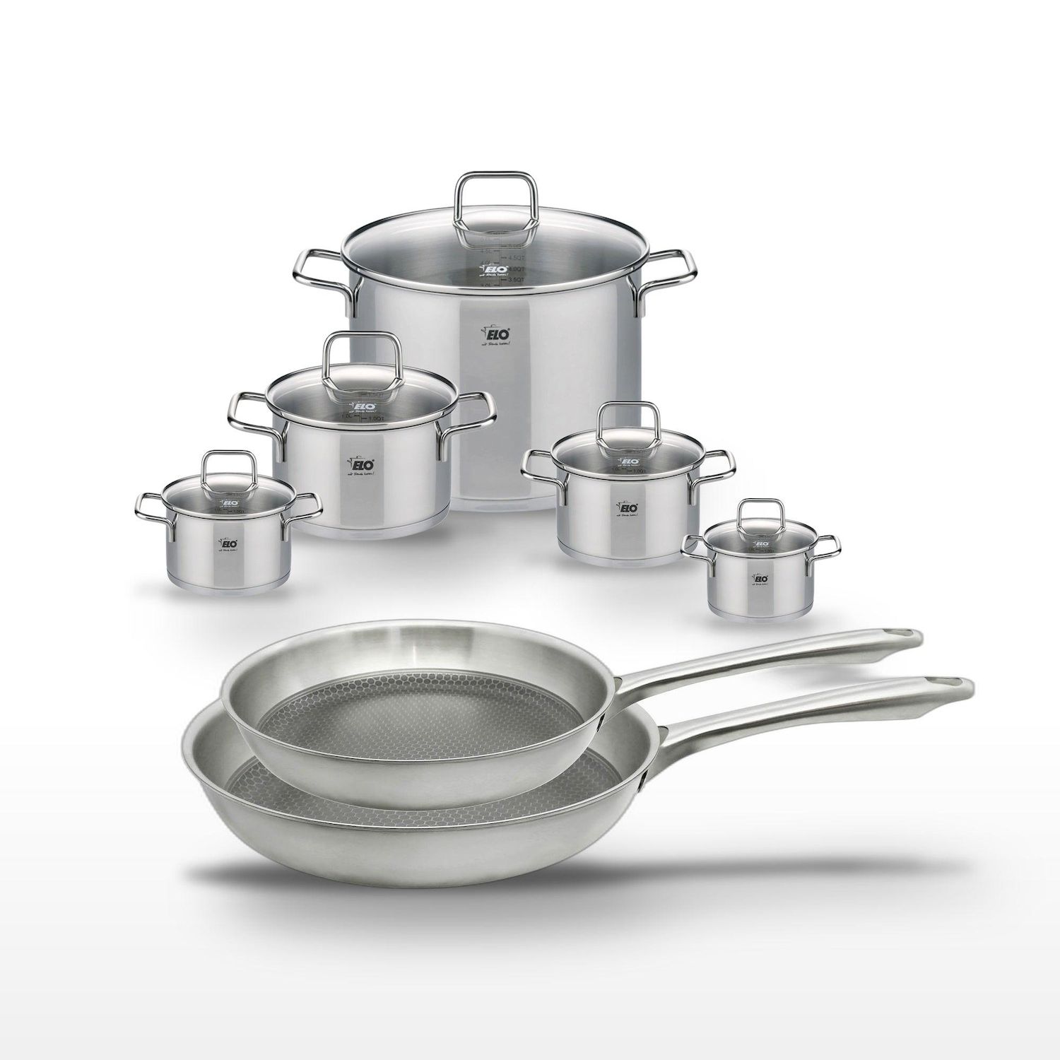 Lot de 2 poêles 24/28cm et 5 faitouts Elo Relief Passion