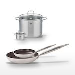 - COMPOSITION : COMPOSITION : Aluminium, inox pour les poêles , acier inoxydable pour les faitouts. Poignées en inox.