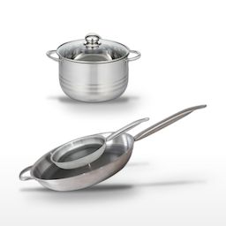 Cet ensemble de cuisine Elo est un choix parfait pour les professionnels et amateurs de cuisine exigeants. Les poêles de 24 cm et 32 cm de la collection Elo Relief Solution sont fabriquées avec une technologie de superposition de matériaux, garantissant une distribution homogène de la chaleur et une cuisson parfaite. Leur revêtement ELODUR® Select sans PFAS assure une surface antiadhésive durable et facile à nettoyer. Le faitout haut de 24 cm Elo Brillant, avec son fond spécial économie d'énergie, est idéal pour des cuissons volumineuses et saines. Chaque pièce est compatible avec tous les types de feux, y compris l'induction, et peut être utilisée au four. Le design moderne et les matériaux résistants assurent une longévité et une satisfaction optimale en cuisine.