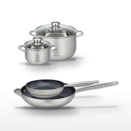 L'ensemble Elo Profi Therm Platinum est conçu pour répondre aux exigences des chefs et amateurs de cuisine. Composé de deux poêles (24 cm et 32 cm) et de deux faitouts (14 cm et 20 cm), cet ensemble assure une cuisson homogène grâce à son revêtement sans PFAS et son fond capsulé. Les poêles, avec leur revêtement ELODUR® Professional, sont résistantes aux rayures et supportent de hautes températures, idéales pour une utilisation intensive. Les faitouts, en acier inoxydable, sont dotés d'une échelle de mesure et d'un couvercle en verre résistant, facilitant la cuisson à la vapeur. Compatibles avec tous les types de feux, y compris l'induction, ces ustensiles sont également faciles à entretenir, pouvant être lavés au lave-vaisselle. L'acier inoxydable 18/10 assure une durabilité exceptionnelle, faisant de cet ensemble un investissement pérenne pour toute cuisine professionnelle ou domestique.