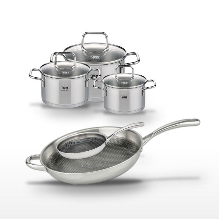 L'ensemble Elo Relief Evolution est idéal pour les professionnels de la cuisine recherchant des ustensiles polyvalents et robustes. Les poêles de 24 cm et 32 cm, dotées du revêtement antiadhésif ELODUR® Professional, offrent une cuisson saine et uniforme, minimisant l'utilisation de matières grasses. La structure Triply assure une distribution homogène de la chaleur, essentielle pour des préparations parfaites. Les faitouts de 14 cm, 16 cm et 20 cm, avec leur fond capsulé, sont conçus pour préserver les nutriments tout en garantissant une efficacité énergétique optimale. Chaque pièce est compatible avec tous les types de feux, y compris l'induction, et peut être utilisée au four, offrant ainsi une grande flexibilité d'utilisation. L'entretien est simplifié grâce à la possibilité de lavage au lave-vaisselle, bien que le lavage manuel soit recommandé pour prolonger la durée de vie des revêtements. Avec Elo, vous investissez dans des produits qui allient performance, durabilité et design élégant, répondant aux exigences des cuisines professionnelles.
