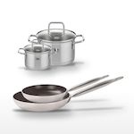 - COMPOSITION : COMPOSITION : Aluminium et inox pour les poêles, acier inoxydable pour les faitouts, garantissant robustesse et durabilité.