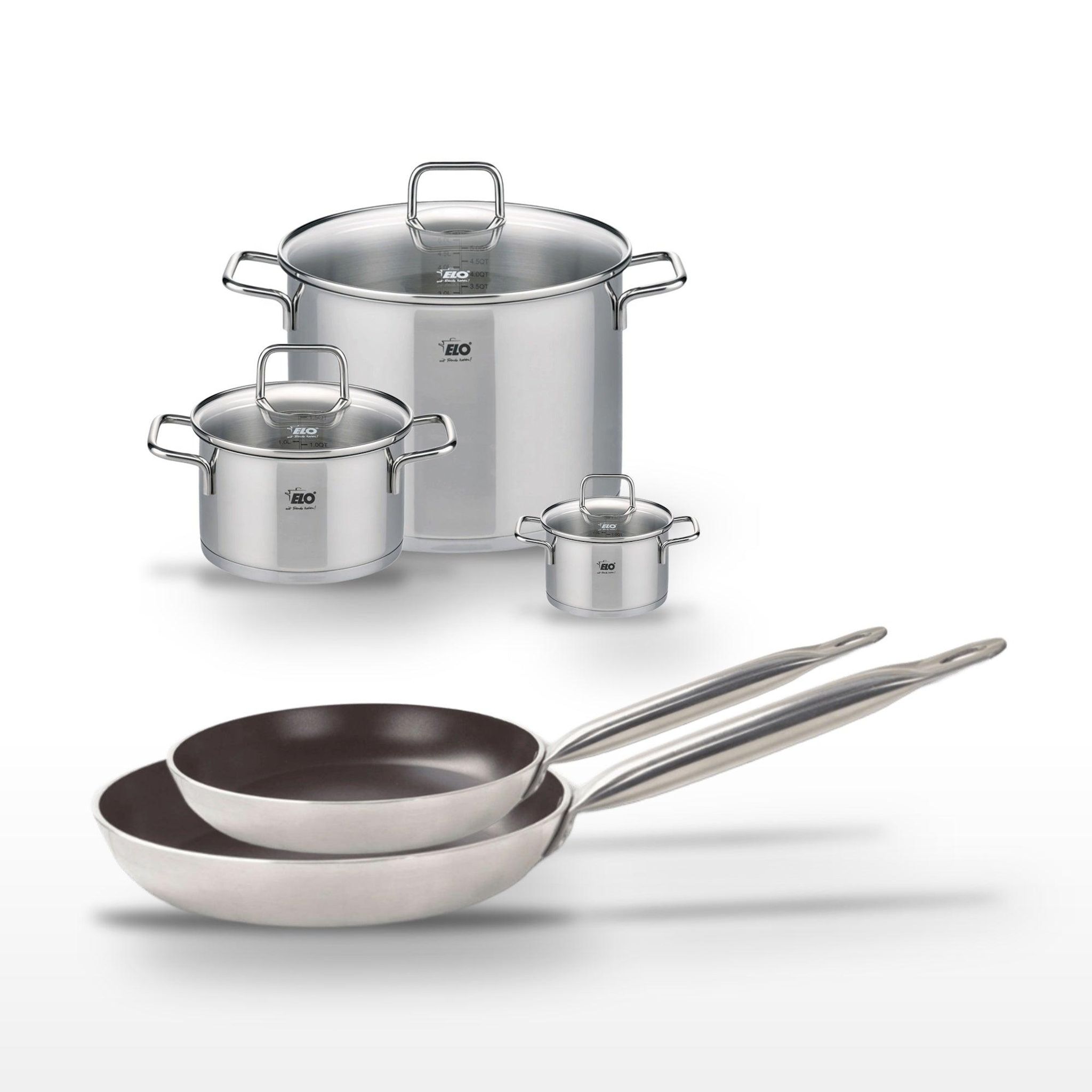 Lot de 2 Poêles 28/32 cm Elo Bistro Line et 3 Faitouts 12/20/26 cm