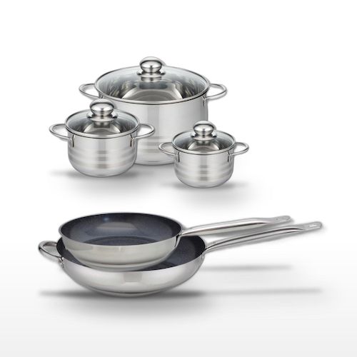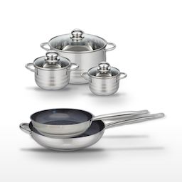 - COMPOSITION : Acier inoxydable 18/10 pour les poêles et inox de haute qualité pour les faitouts, garantissant robustesse et résistance.