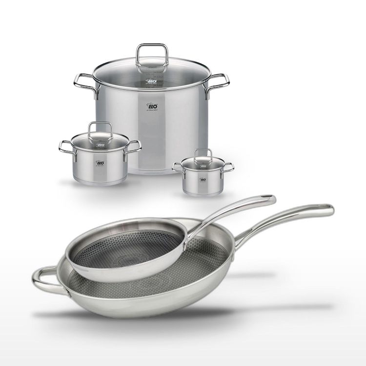 - COMPOSITION : Poêles en acier inoxydable 18/10 avec revêtement ELODUR® Professional. Faitouts en acier inoxydable avec couvercles en verre.