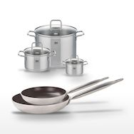 - COMPOSITION : COMPOSITION : Poêles en aluminium et inox avec revêtement céramique, faitouts en acier inoxydable et verre.
