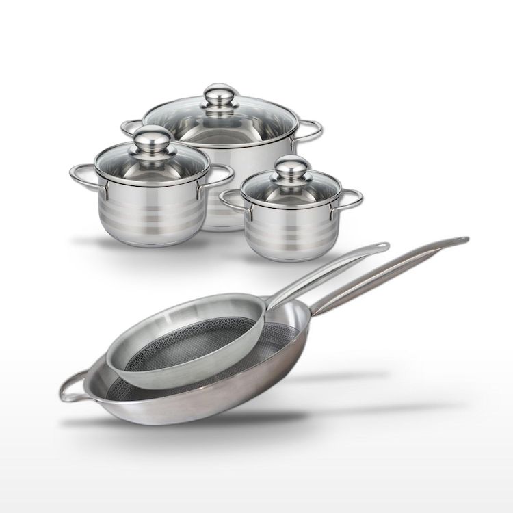 - DESCRIPTION : DESCRIPTION : L'ensemble Elo Relief Solution inclut deux poêles et trois faitouts en acier inoxydable, offrant une cuisson homogène et une durabilité exceptionnelle.