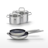 - COMPOSITION : Les poêles sont en acier inoxydable 18/10 avec revêtement ELODUR® Professional, et les faitouts en inox avec couvercles en verre, garantissant solidité et résistance.