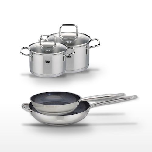 - DESCRIPTION : L'ensemble Elo Profi Therm Platinum inclut deux poêles céramiques de 28 cm et 32 cm, ainsi que deux faitouts en inox de 14 cm et 16 cm, tous dotés de revêtements sans PFAS pour une cuisson saine.