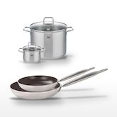 - PETIT + : Les poêles sont dotées d'un revêtement antiadhésif ELODUR® Select, résistant aux rayures et facile à nettoyer, pour une utilisation pratique et durable.