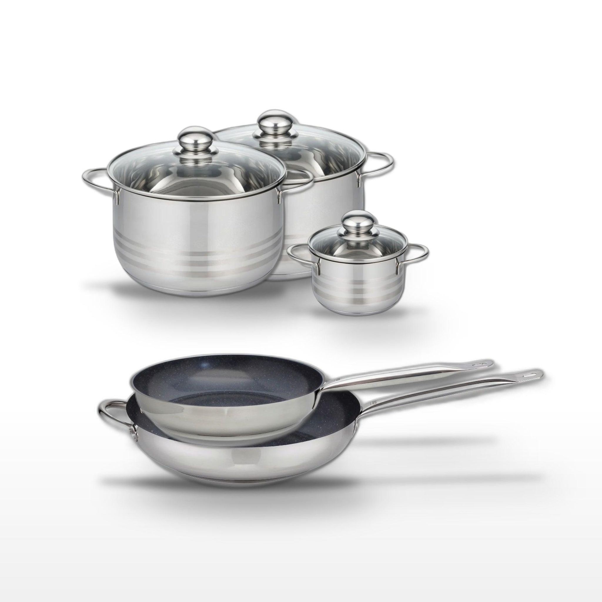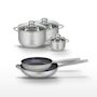 - COMPOSITION : Poêles en acier inoxydable avec revêtement sans PFAS, faitouts en inox. Tous sont conçus pour une performance de cuisson optimale.