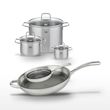 Lot de 2 Poêles 32/24cm et 3 Faitouts 14/20/26cm en inox Elo Relief Evolution