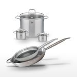 L'ensemble Elo Relief Solution est conçu pour les professionnels et les amateurs de cuisine exigeants. Les poêles de 32 cm et 28 cm, ainsi que les faitouts de 12 cm, 14 cm et 26 cm, sont fabriqués en acier inoxydable 18/10 de haute qualité, assurant une durabilité exceptionnelle et une répartition homogène de la chaleur. Le revêtement antiadhésif ELODUR® Select sans PFAS garantit une cuisson sans accrocs et un nettoyage simplifié. Chaque pièce est compatible avec tous les types de feux, y compris l'induction, et peut être utilisée au four jusqu'à 240°C, offrant ainsi une grande polyvalence. Le design moderne et ergonomique, avec des bords verseurs et des manches confortables, facilite la manipulation et le service. Cet ensemble est parfait pour les cuisines professionnelles et domestiques, offrant une performance et une élégance incomparables.