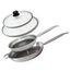 - COMPOSITION: Poêles en acier inoxydable 18/10, aluminium, avec revêtement antiadhésif, couvercles en verre et inox
