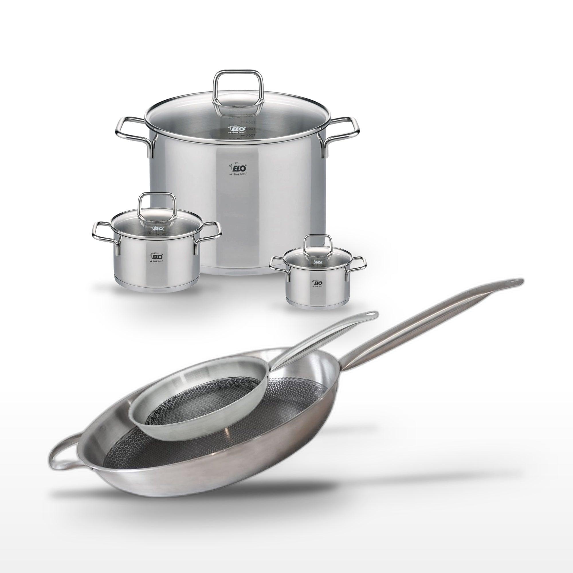 Lot de 3 Faitouts 12/16/26 cm et 2 Poêles 24/32 cm Elo Relief Solution