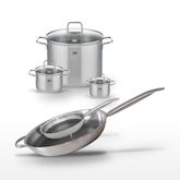 - PETIT + : Design moderne, bord verseur, manches creux confortables. Compatibles tous feux, y compris induction.