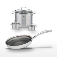 - COMPOSITION : COMPOSITION : Acier inoxydable de qualité supérieure pour les faitouts et la poêle, avec un revêtement ELODUR® Professional sans PFAS pour une cuisson saine.