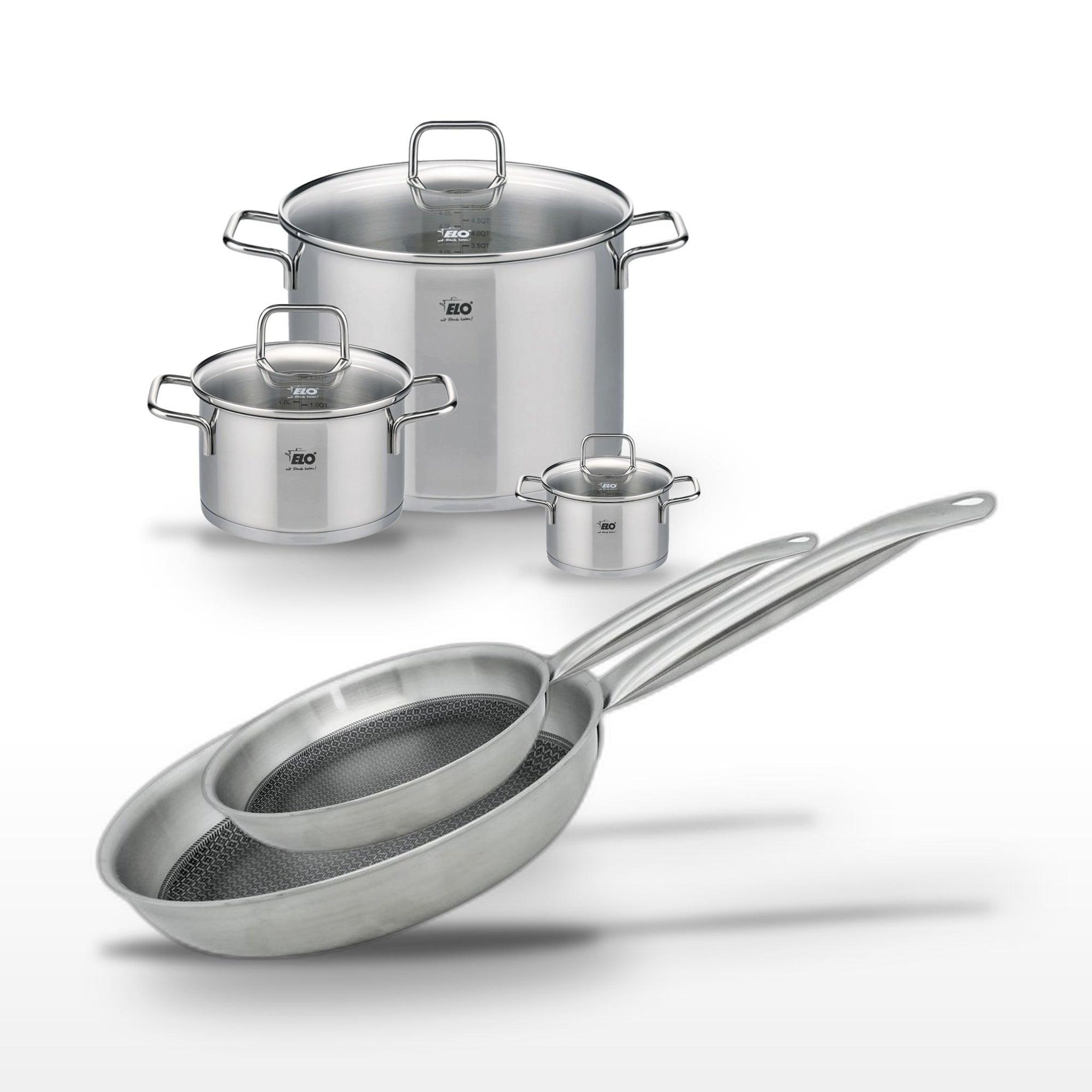 Lot de 3 Faitouts Elo Relief Solution 12/20/26cm et 2 Poêles 24/28cm