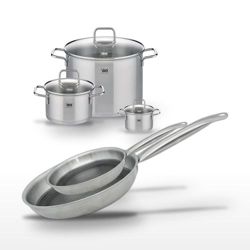 - DESCRIPTION : DESCRIPTION : Ensemble Elo Relief Solution avec 3 faitouts et 2 poêles en acier inoxydable pour une cuisson parfaite.
