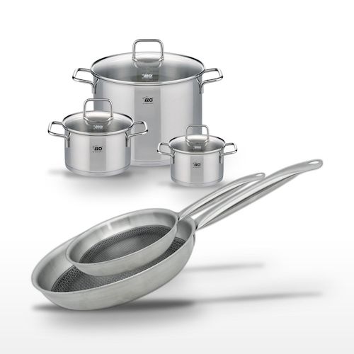 - DESCRIPTION : DESCRIPTION : Élégant lot de faitouts et poêles Elo Relief Solution en inox, pour une cuisine de qualité supérieure.