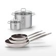 - COMPOSITION : Poêles en aluminium et inox avec revêtement céramique sans PFAS, Faitouts en acier inoxydable et verre.