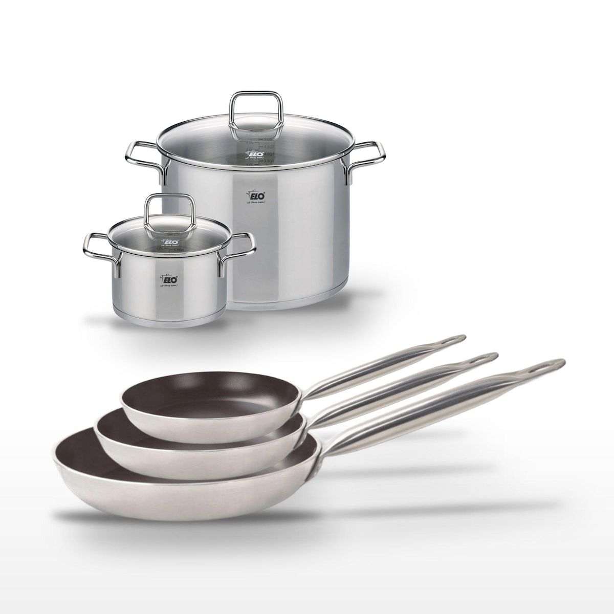 - DESCRIPTION : Ce lot Elo Bistro Line offre trois poêles en céramique antiadhésives et deux faitouts en inox, garantissant une cuisson saine et homogène.