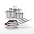 - COMPOSITION : Poêles en aluminium et inox avec revêtement céramique sans PFAS. Faitouts en acier inoxydable avec couvercles en verre.