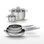 - COMPOSITION : COMPOSITION : Fabriqués en acier inoxydable 18/10 pour les poêles et inox pour les faitouts, ces ustensiles garantissent robustesse et résistance à la corrosion.