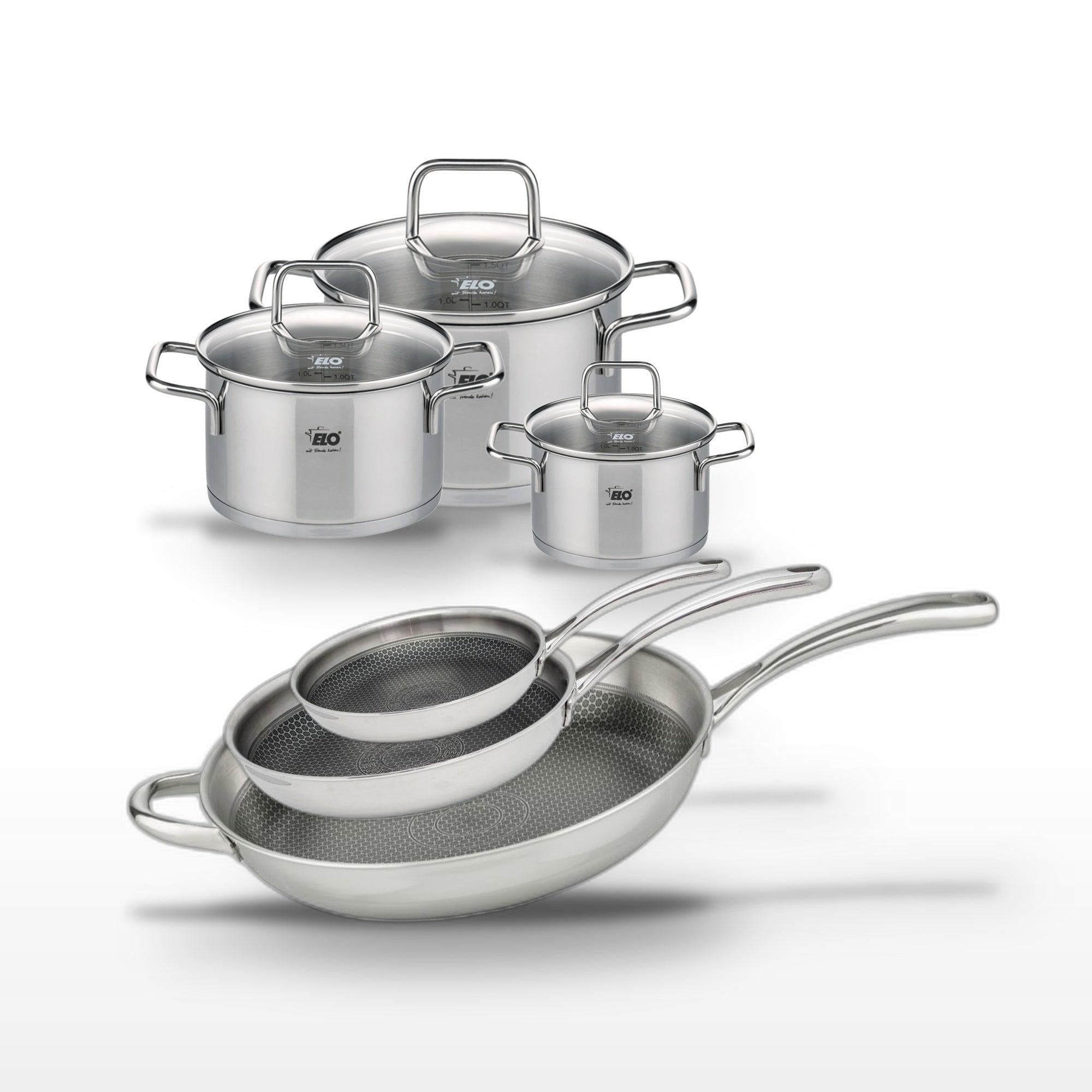 Lot de 3 Poêles 24/28/32 cm Elo Relief Evolution et 3 Faitouts 12/16/20 cm Elo Citrin