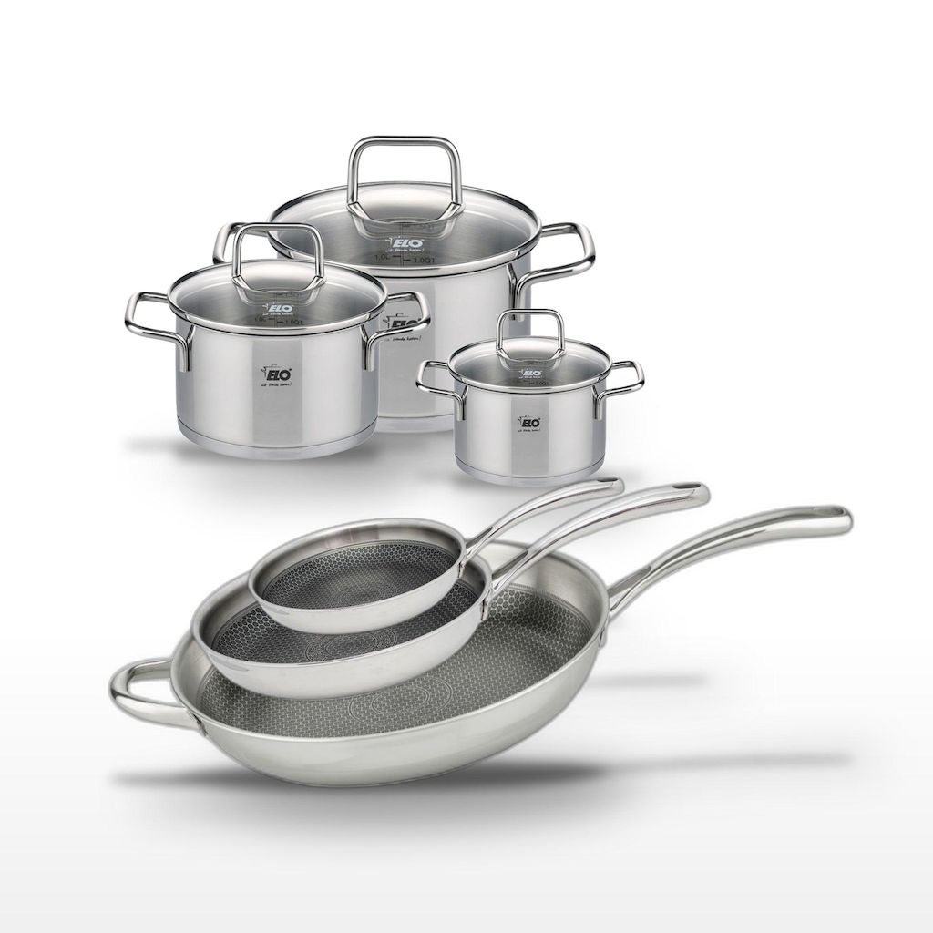 - PETIT + : Le revêtement ELODUR® Professional des poêles assure une cuisson sans attacher, tandis que les faitouts conservent les vitamines grâce à leur fond capsulé.
