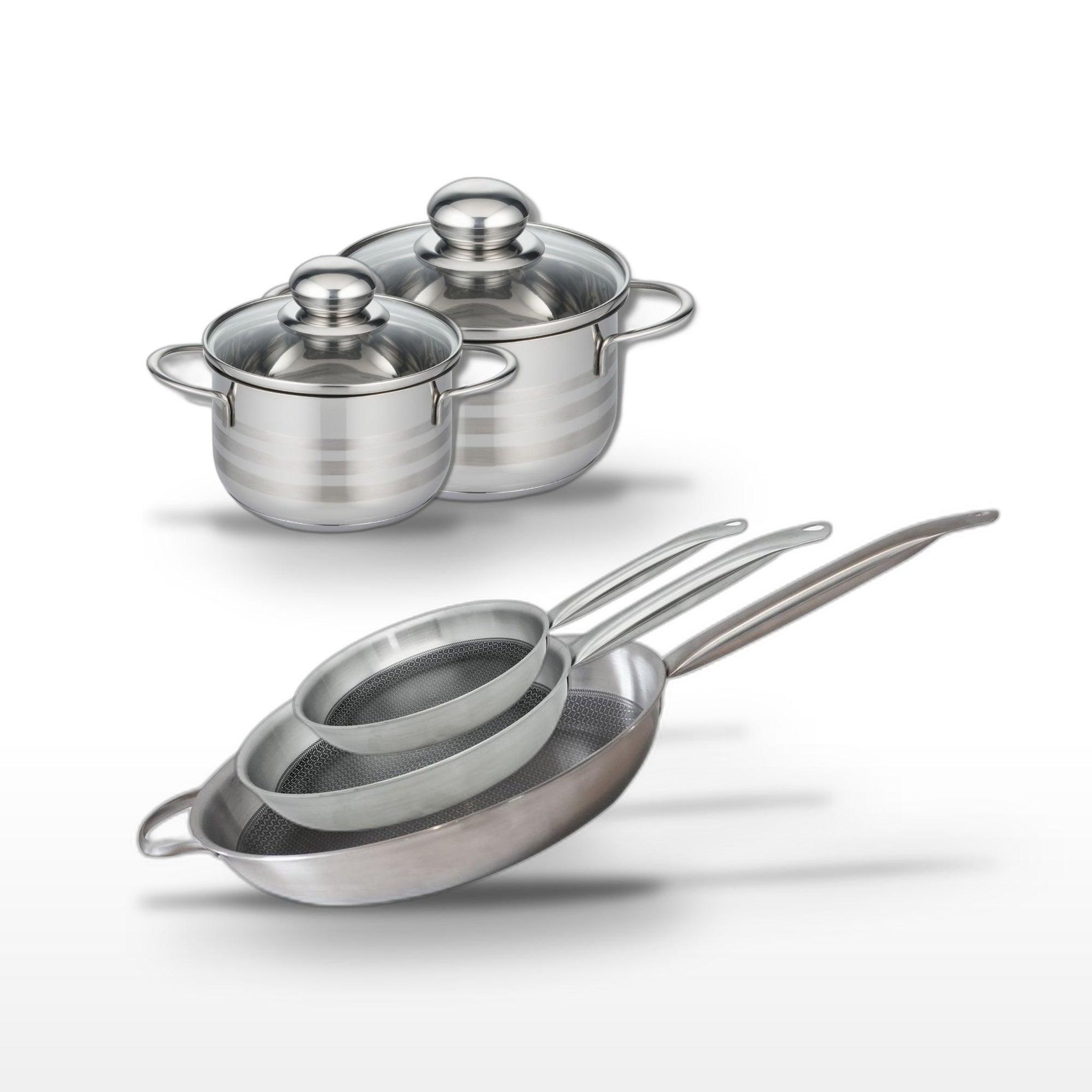 Lot de 3 Poêles 24/28/32 cm et 2 Faitouts 12/14 cm Elo Relief Solution