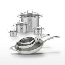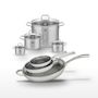- COMPOSITION : Inox 18/10 pour les poêles et acier inoxydable pour les faitouts, garantissant robustesse et durabilité.