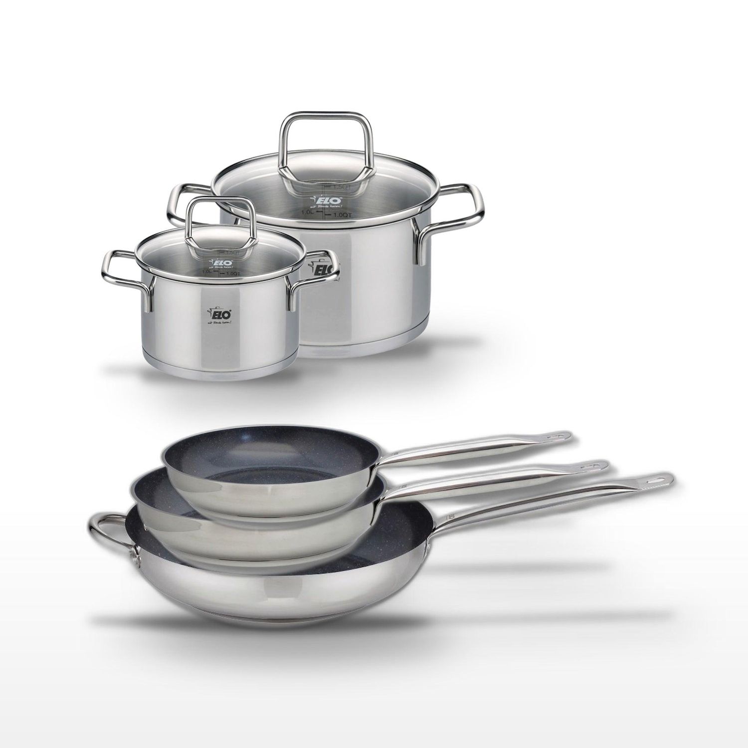 Lot de 3 Poêles 24/28/32cm Elo Profi Therm Platinum et 2 Faitouts 12/16cm