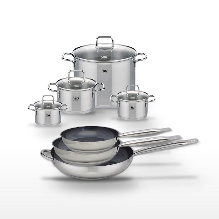 - DESCRIPTION : DESCRIPTION : Ce lot comprend 3 poêles en céramique sans PFAS de la collection Elo Profi Therm Platinum et 4 faitouts en inox Elo Citrin, offrant une cuisson saine et homogène.