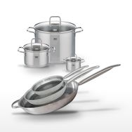 - COMPOSITION : COMPOSITION : Poêles en acier inoxydable 18/10 avec revêtement antiadhésif ELODUR® Select. Faitouts en inox avec couvercle en verre.
