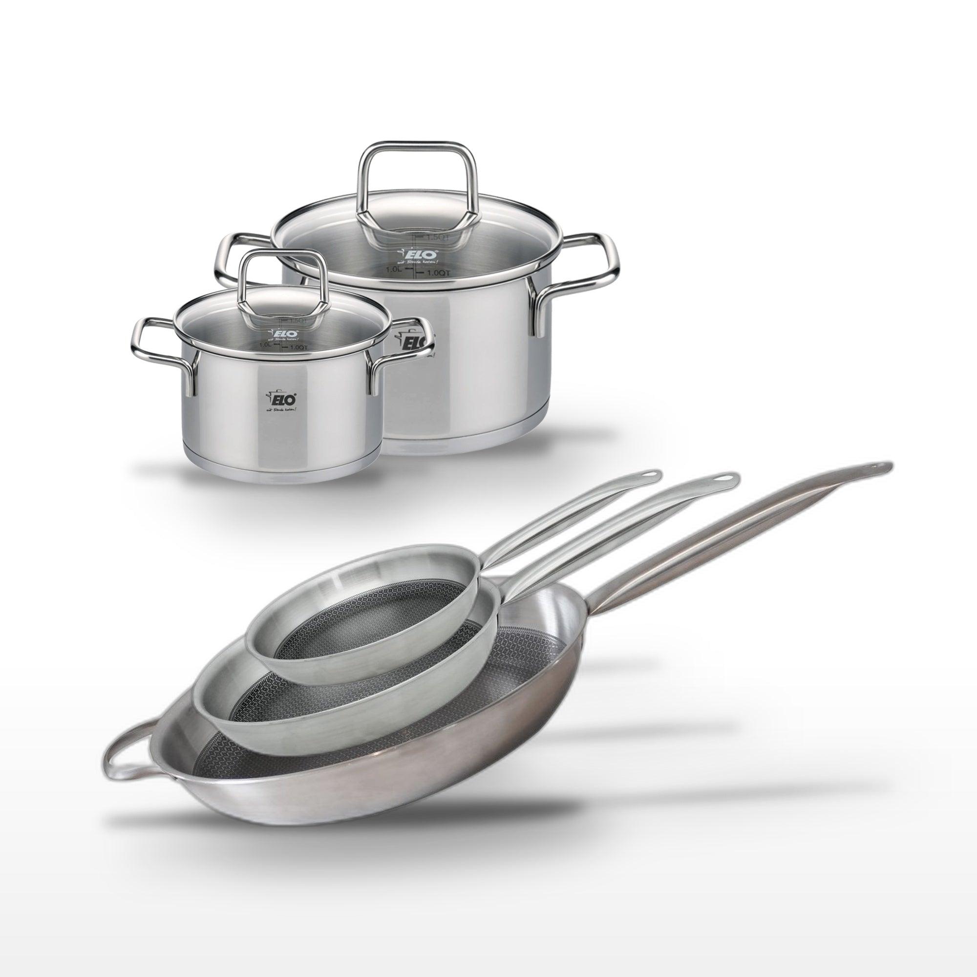 - DESCRIPTION : L'ensemble Elo Relief Solution inclut 3 poêles et 2 faitouts en inox pour une cuisine polyvalente et performante.