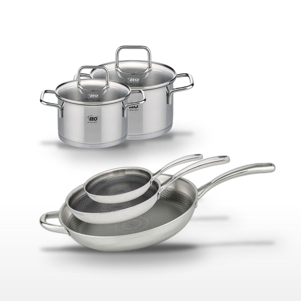- DESCRIPTION : Ce lot Elo Relief Evolution inclut 3 poêles et 2 faitouts, parfaits pour une cuisine variée et saine. Profitez d'une cuisson homogène grâce à la technologie Triply et au revêtement antiadhésif sans PFAS.