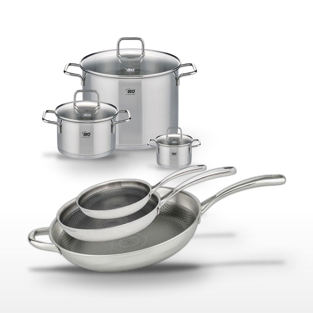 - DESCRIPTION : L'ensemble Elo Relief Evolution combine trois poêles et trois faitouts en inox pour une cuisine variée et saine.