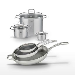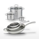 - COMPOSITION : Structure Triply pour les poêles, acier inoxydable et verre pour les faitouts.