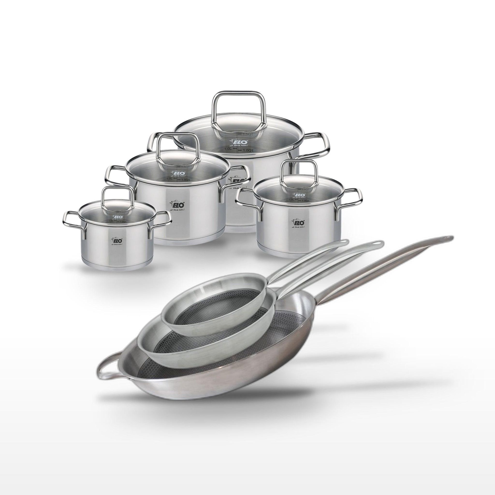 - DESCRIPTION : DESCRIPTION : Ensemble complet avec 3 poêles et 4 faitouts Elo Relief Solution, offrant une cuisson homogène et un design élégant.