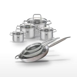 Ce lot professionnel Elo Relief Solution est l'outil parfait pour les cuisines exigeantes. Composé de trois poêles en acier inoxydable 18/10, de 32 cm, 28 cm et 24 cm, et de quatre faitouts en inox de la collection Elo Citrin, il offre une polyvalence inégalée. Les poêles, avec leur revêtement antiadhésif ELODUR® Select sans PFAS, garantissent une cuisson uniforme et sans accroche, tout en étant adaptées à tous les types de feux, y compris induction. Les faitouts, de tailles variées, sont idéaux pour préparer des sauces, des soupes ou des plats mijotés. Chaque pièce est conçue pour optimiser l'efficacité énergétique grâce à un fond capsulé, préservant ainsi les vitamines et les saveurs naturelles des aliments. Le design moderne et fonctionnel, avec des poignées confortables et des bords verseurs pratiques, rend cet ensemble indispensable pour les professionnels de la cuisine. Faciles d'entretien, tous les éléments passent au lave-vaisselle, assurant ainsi une utilisation quotidienne sans souci. Choisir Elo, c'est opter pour la qualité allemande, la durabilité et l'innovation au service de votre créativité culinaire.