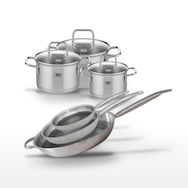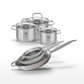 - COMPOSITION : COMPOSITION : Poêles en acier inoxydable 18/10 et aluminium , faitouts en acier inoxydable avec couvercles en verre.