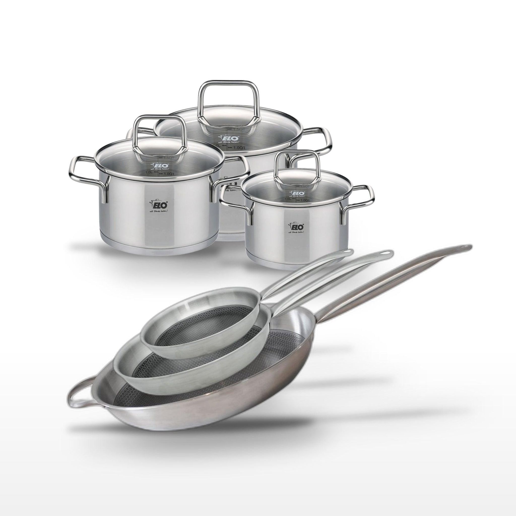 - DESCRIPTION : DESCRIPTION : Lot Elo avec 3 poêles Relief Solution de 32/28/24 cm et 3 faitouts Citrin de 12/14/16 cm, pour une cuisine polyvalente.