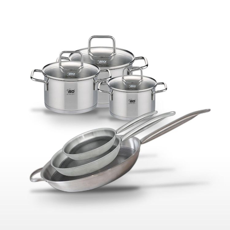 Lot de 3 Poêles 32/28/24cm Elo Relief Solution et 3 Faitouts Elo Citrin