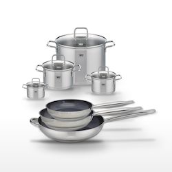 - DESCRIPTION : DESCRIPTION : L'ensemble Elo comprend des poêles céramique sans PFAS et des faitouts en inox, alliant technologie et élégance pour une cuisine saine.