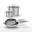 - DESCRIPTION : DESCRIPTION : Lot composé de trois poêles céramique sans PFAS et deux faitouts en inox pour une cuisine saine et performante.