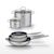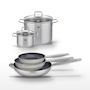 - COMPOSITION : COMPOSITION : Poêles en acier inoxydable 18/10 avec revêtement sans PFAS, faitouts en inox et verre.